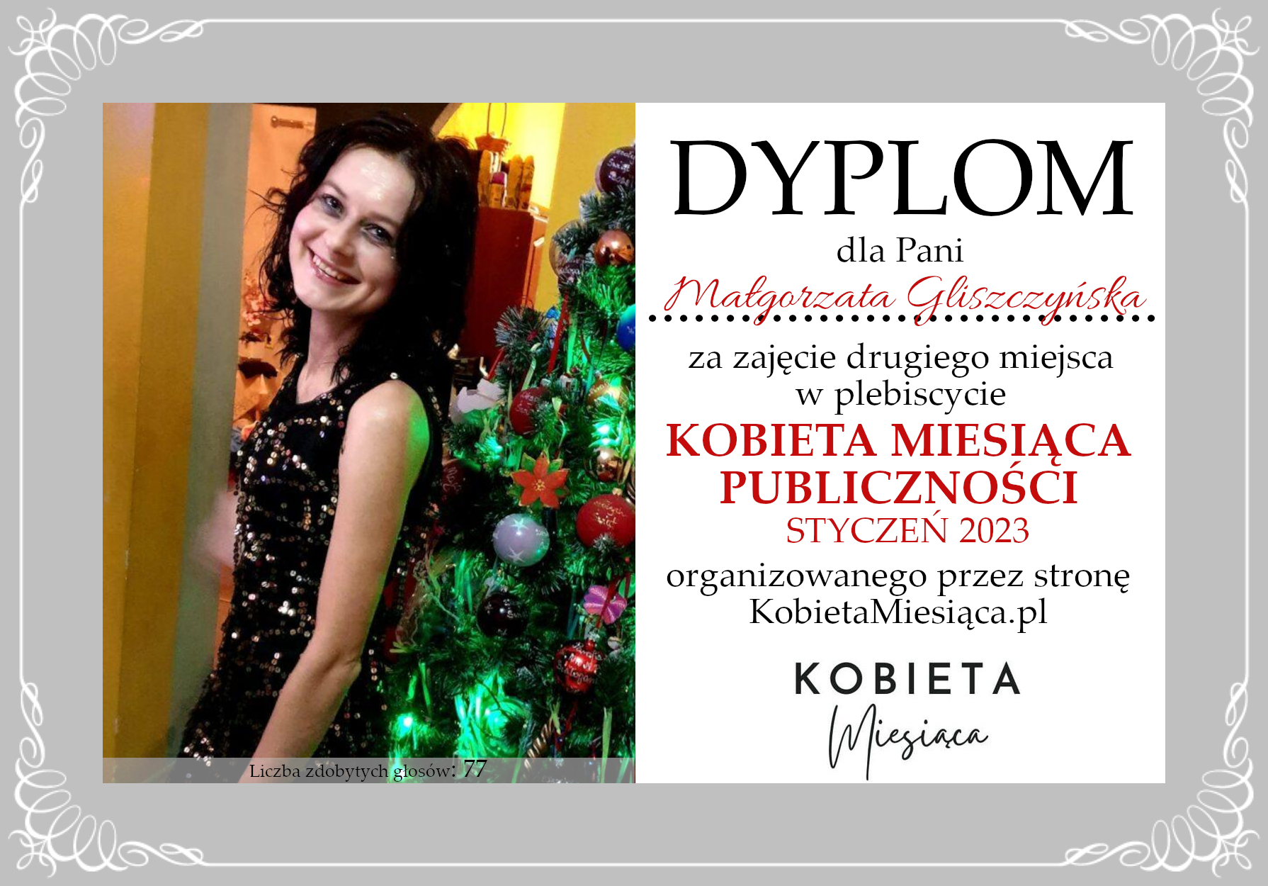 Dyplomy Dyplom – Kobieta Miesiąca Publiczności: Styczeń 2023 Autor Administrator 2 lata temu Zdobywczyni 2. miejsca – Małgorzata Gliszczyńska Udostępnij tę stronę REKLAMA Nawigacja wpisu Poprzedni Dyplom – Kobieta Miesiąca Publiczności: Styczeń 2023Dalej Dyplom – Kobieta Miesiąca: Styczeń 2023