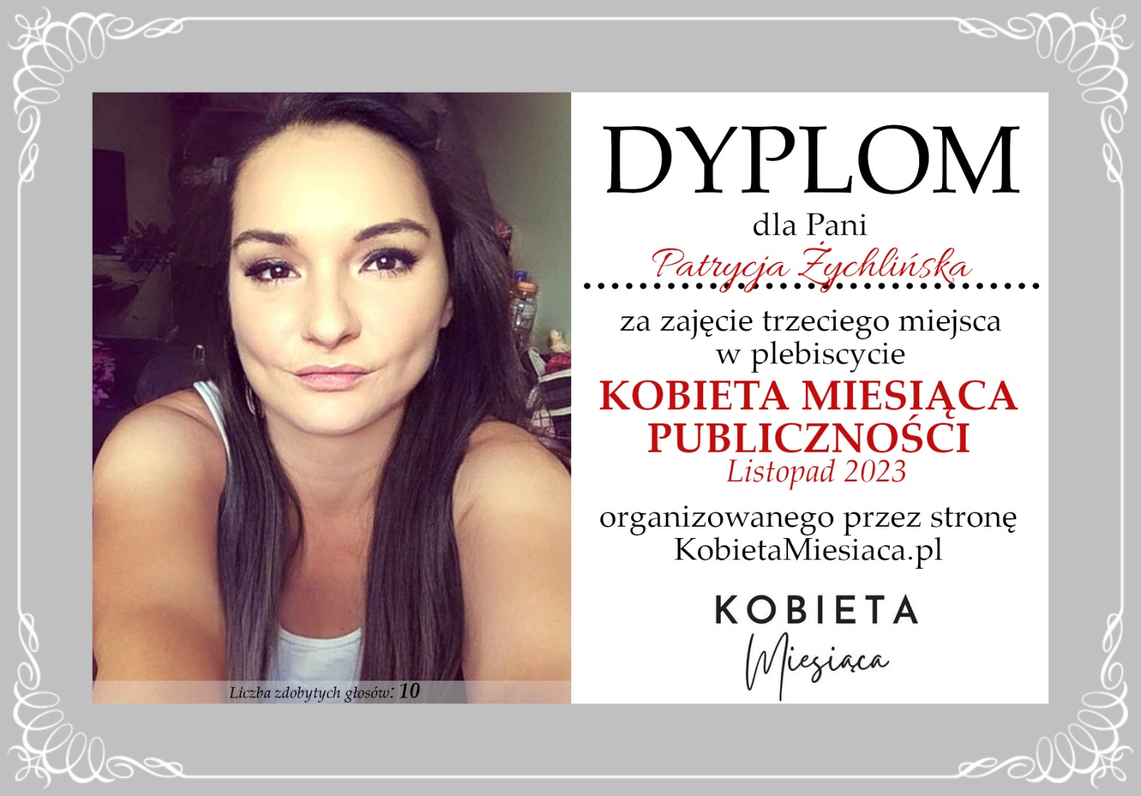 Dyplomy Dyplom – Kobieta Miesiąca Publiczności: Listopad 2023 Autor Administrator 2 lata temu Zdobywczyni 3. miejsca – Patrycja Żychlińska Udostępnij tę stronę REKLAMA Nawigacja wpisu Poprzedni Dyplom – Kobieta Miesiąca: Listopad 2023Dalej Dyplom – Kobieta Miesiąca Publiczności: Listopad 2023