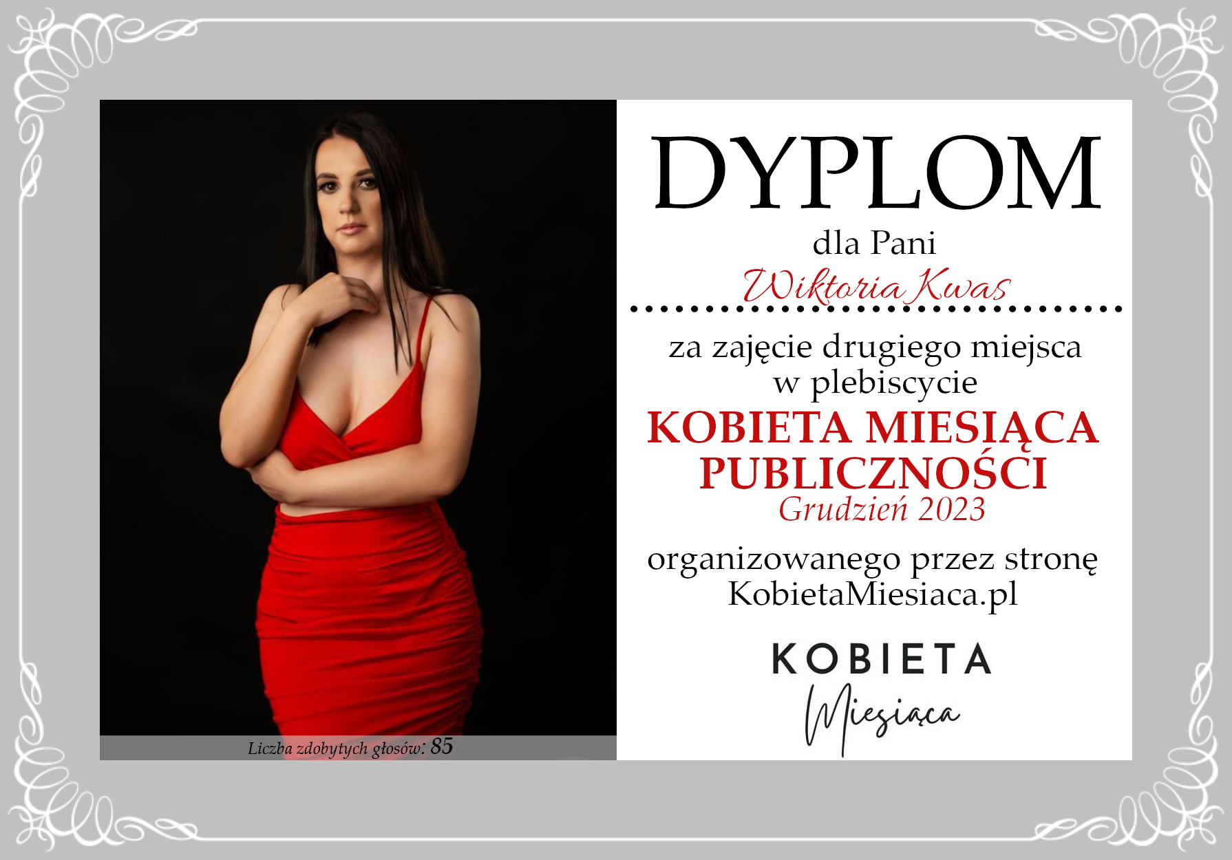 Dyplomy Dyplom – Kobieta Miesiąca Publiczności: Grudzień 2023 Autor Administrator 2 lata temu Zdobywczyni 2. miejsca – Wiktoria Kwas Udostępnij tę stronę REKLAMA Nawigacja wpisu Poprzedni Dyplom – Kobieta Miesiąca: Grudzień 2023Dalej Dyplom – Kobieta Miesiąca Publiczności: Grudzień 2023