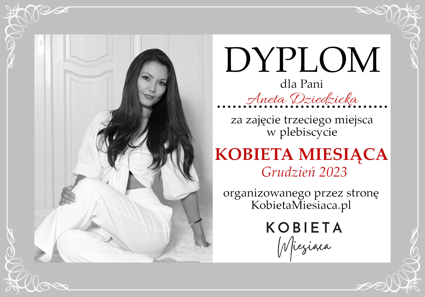 Dyplomy Dyplom – Kobieta Miesiąca: Grudzień 2023 Autor Administrator 2 lata temu Zdobywczyni 3. miejsca – Aneta Dziedzicka Udostępnij tę stronę REKLAMA Nawigacja wpisu Poprzedni Dyplom – Kobieta Miesiąca: Grudzień 2023Dalej Dyplom – Kobieta Miesiąca: Grudzień 2023