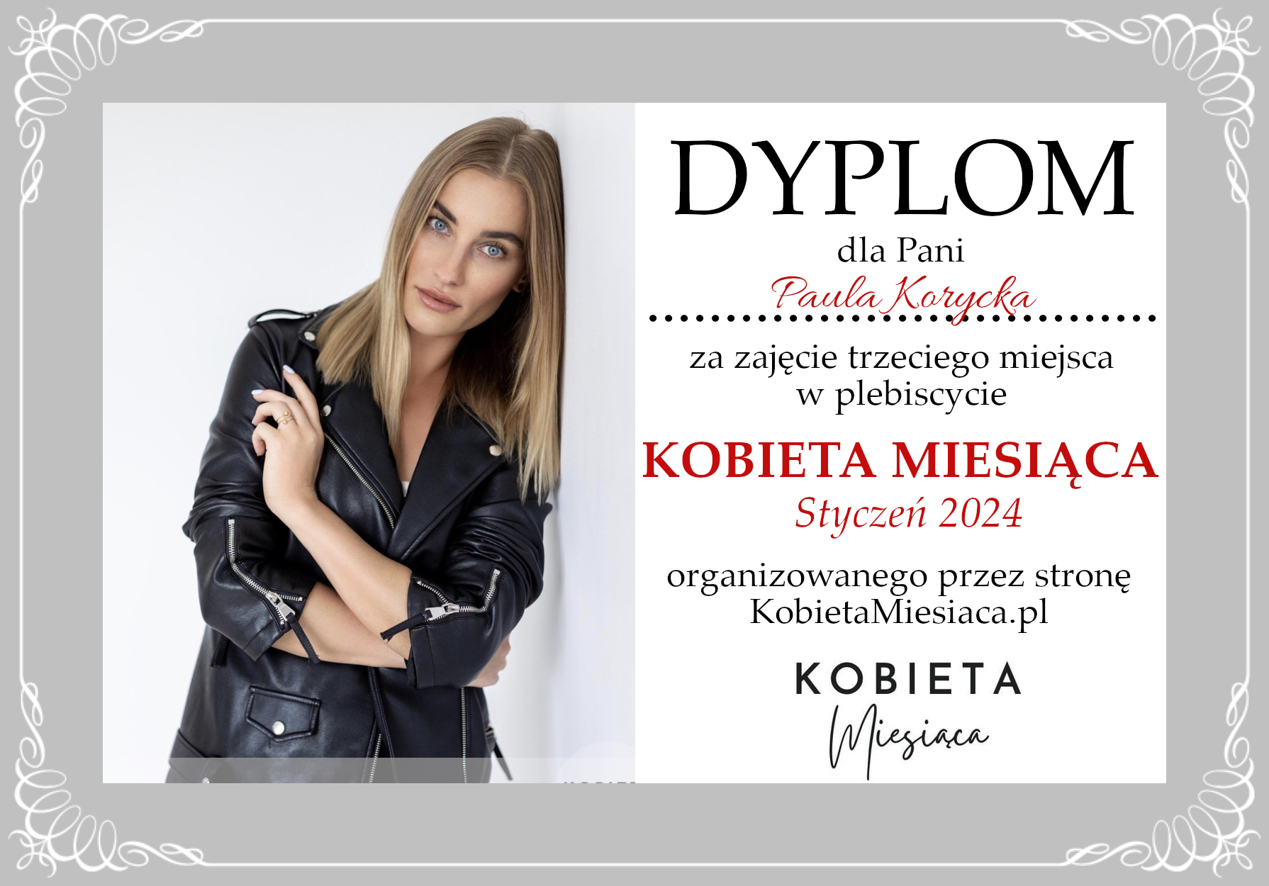 Dyplomy Dyplom – Kobieta Miesiąca: Styczeń 2024 Autor Administrator 2 lata temu Zdobywczyni 3. miejsca – Paula Korycka Udostępnij tę stronę REKLAMA Nawigacja wpisu Poprzedni Dyplom – Kobieta Miesiąca Publiczności: Styczeń 2024Dalej Dyplom – Kobieta Miesiąca: Styczeń 2024