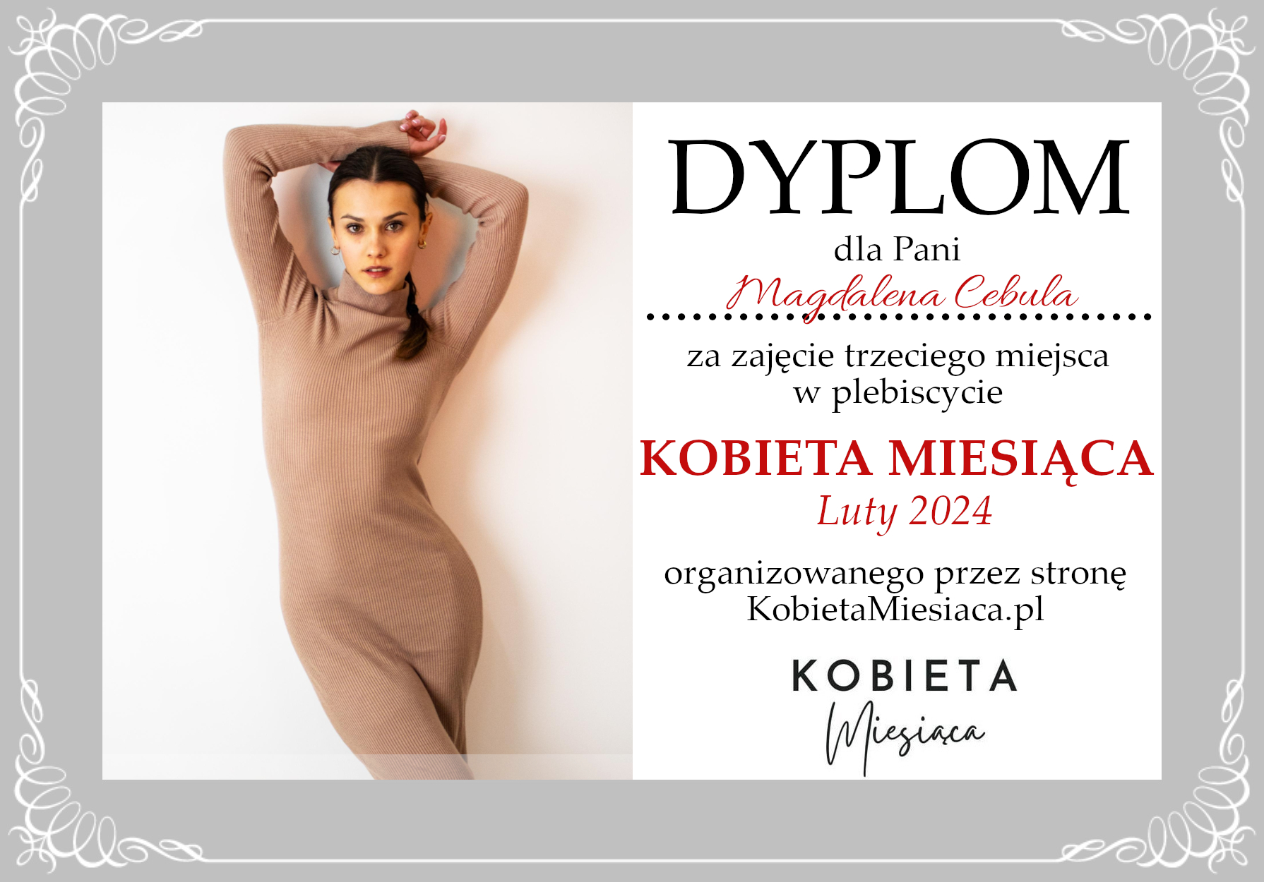 Dyplomy Dyplom – Kobieta Miesiąca: Luty 2024 Autor Administrator 2 lata temu Zdobywczyni 3. miejsca – Magdalena Cebula Udostępnij tę stronę REKLAMA Nawigacja wpisu Poprzedni Dyplom – Kobieta Miesiąca: Luty 2024Dalej Dyplom – Kobieta Miesiąca Publiczności: Luty 2024