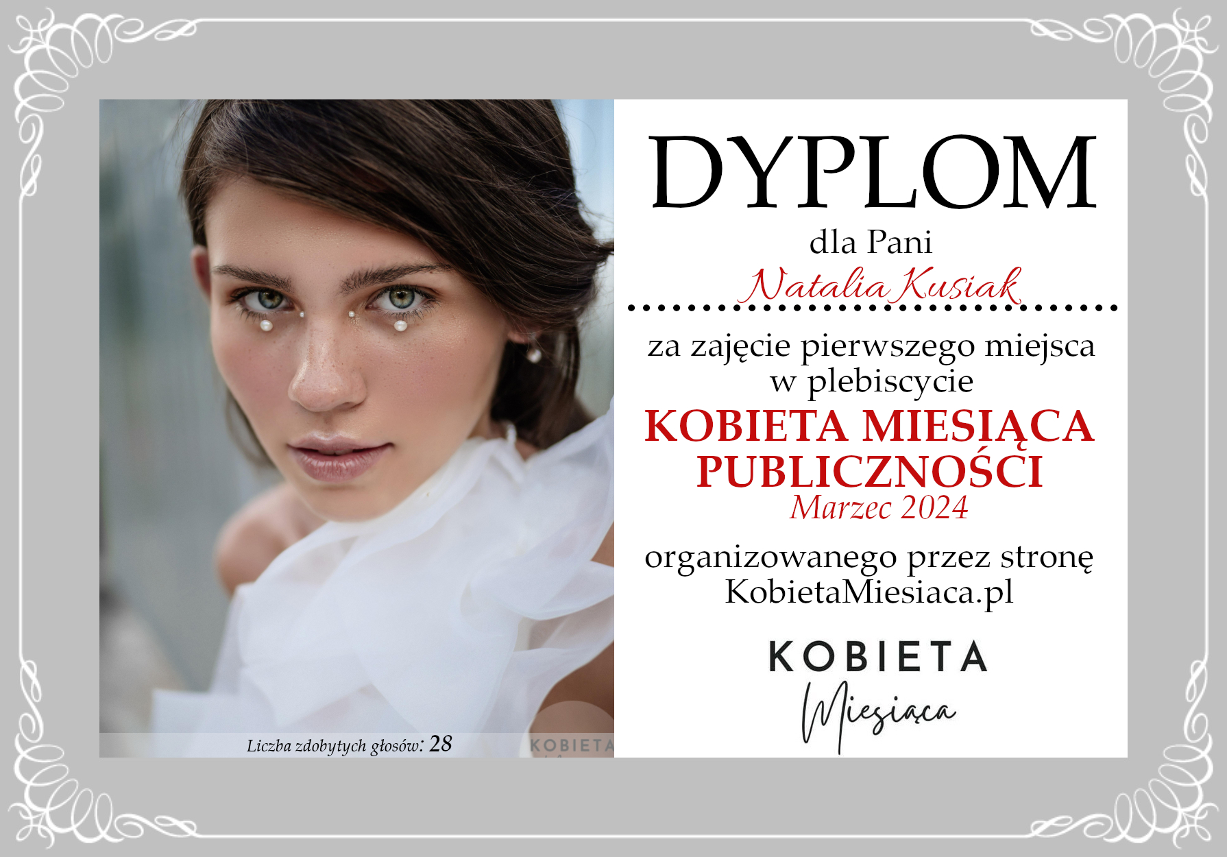 Dyplomy Dyplom – Kobieta Miesiąca Publiczności: Marzec 2024 Autor Administrator 2 lata temu Zdobywczyni 1. miejsca – Natalia Kusiak Udostępnij tę stronę REKLAMA Nawigacja wpisu Poprzedni Dyplom – Kobieta Miesiąca: Marzec 2024Dalej Dyplom – Kobieta Miesiąca Publiczności: Marzec 2024
