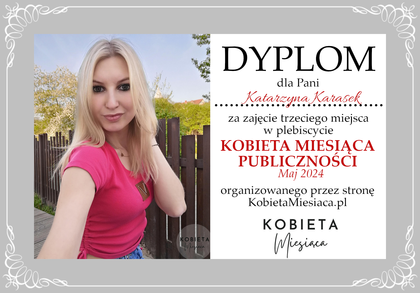 • Dyplom – Kobieta Miesiąca Publiczności: Maj 2024
