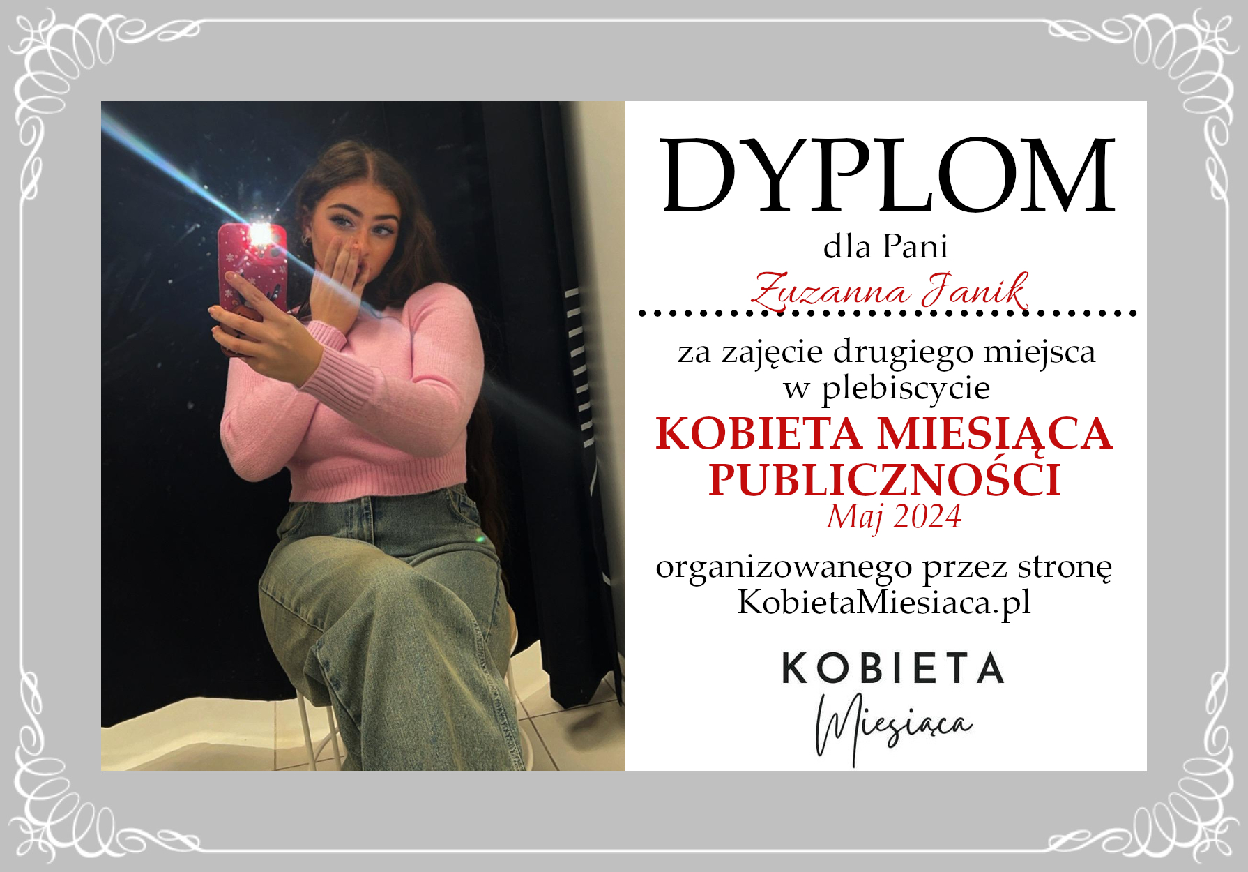 Dyplomy Dyplom – Kobieta Miesiąca Publiczności: Maj 2024 Autor Administrator 2 lata temu Zdobywczyni 2. miejsca – Zuzanna Janik Udostępnij tę stronę REKLAMA Nawigacja wpisu Poprzedni Dyplom – Kobieta Miesiąca: Maj 2024Dalej Dyplom – Kobieta Miesiąca: Maj 2024