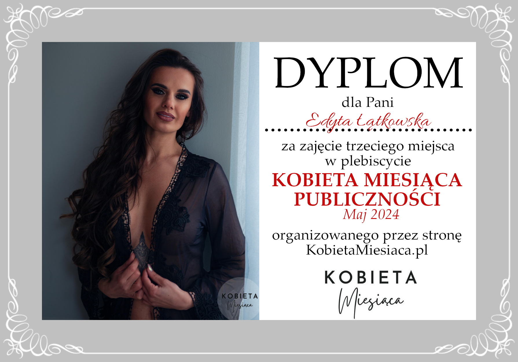 • Dyplom – Kobieta Miesiąca Publiczności: Maj 2024