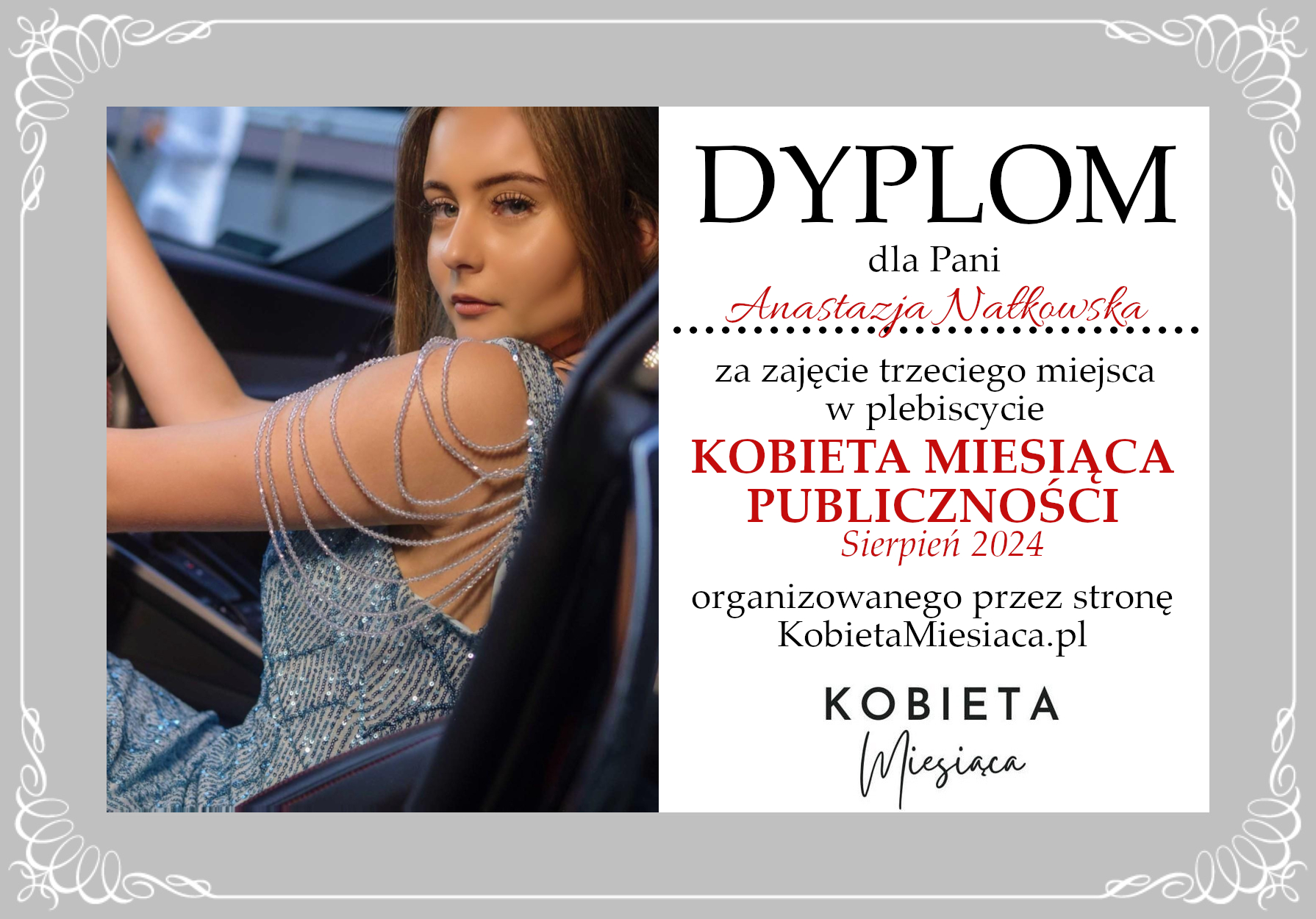 Dyplomy Dyplom – Kobieta Miesiąca Publiczności: Sierpień 2024 Autor Administrator 2 lata temu Zdobywczyni 3. miejsca – Anastazja Nałkowska Udostępnij tę stronę REKLAMA Nawigacja wpisu Poprzedni Dyplom – Kobieta Miesiąca Publiczności: Sierpień 2024Dalej Dyplom – Kobieta Miesiąca Publiczności: Wrzesień 2024