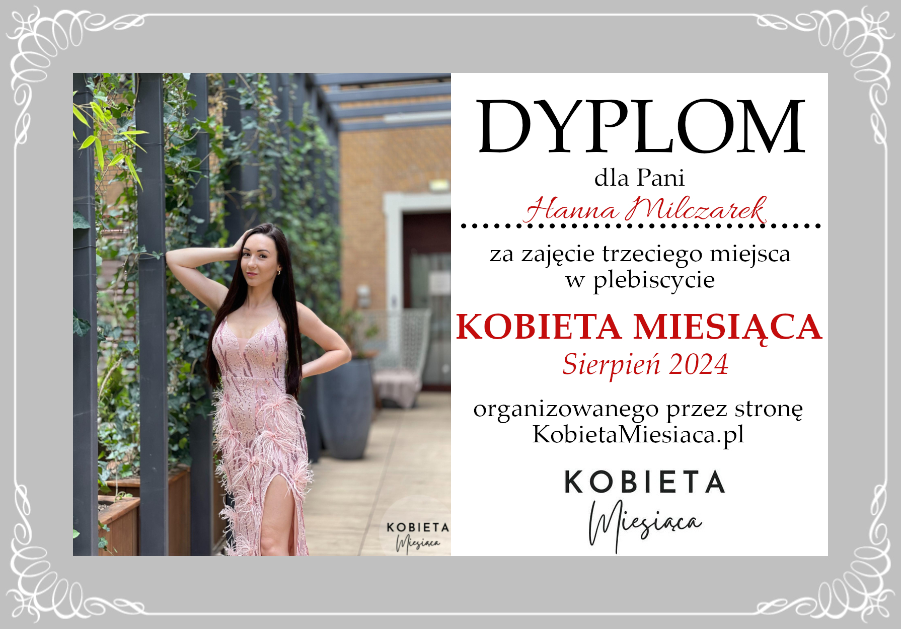 Dyplomy Dyplom – Kobieta Miesiąca: Sierpień 2024 Autor Administrator 2 lata temu Zdobywczyni 3. miejsca – Hanna Milczarek Udostępnij tę stronę REKLAMA Nawigacja wpisu Poprzedni Wyniki wrześniowej edycji Plebiscytu Kobieta MiesiącaDalej Dyplom – Kobieta Miesiąca: Sierpień 2024