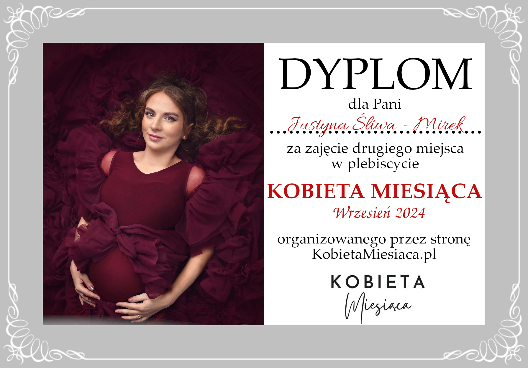 Dyplomy Dyplom – Kobieta Miesiąca: Wrzesień 2024 Autor Administrator 2 lata temu Zdobywczyni 2. miejsca – Justyna Śliwa – Mirek Udostępnij tę stronę REKLAMA Nawigacja wpisu Poprzedni Dyplom – Kobieta Miesiąca Publiczności: Wrzesień 2024Dalej Dyplom – Kobieta Miesiąca: Wrzesień 2024