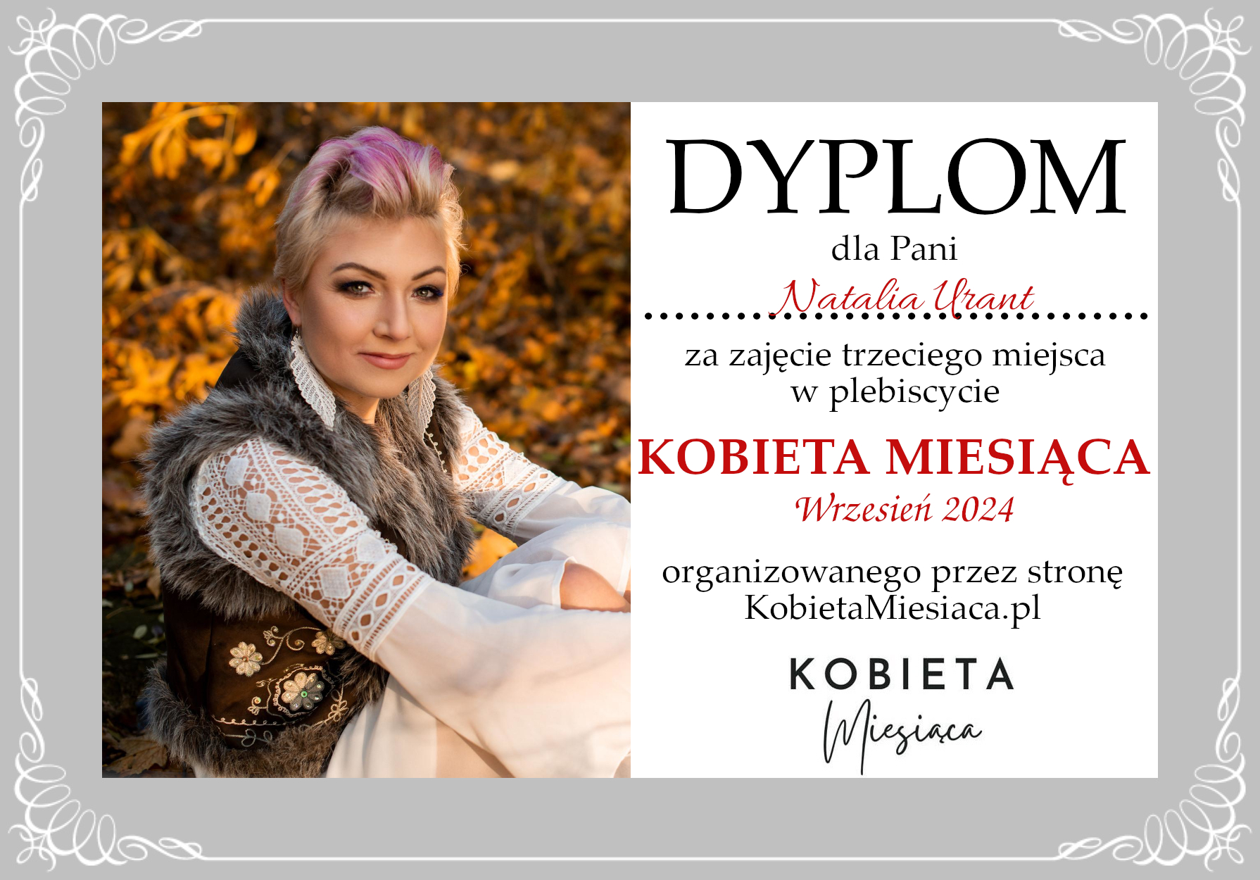 Dyplomy Dyplom – Kobieta Miesiąca: Wrzesień 2024 Autor Administrator 2 lata temu Zdobywczyni 3. miejsca – Natalia Urant Udostępnij tę stronę REKLAMA Nawigacja wpisu Poprzedni Dyplom – Kobieta Miesiąca: Wrzesień 2024Dalej Dyplom – Kobieta Miesiąca: Wrzesień 2024